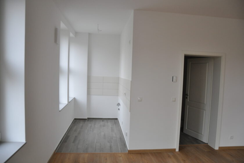 Insgesamt besitzt die 2-Zimmerwohnung ca. 44,00 m² Wohnfläche. Diese verteilt sich auf den in mehrere Bereiche abzugrenzenden Wohn- & Kochbereich mit offen gestalteter Küche, das Schlafzimer und das geschmackvoll gefieste Duschbad mit WM-Anschluss. Selbstverständlich wurden hier nur hochwertige Materialien verwendet, alle aufeinander abgestimmt was Form und Farbe betrifft um ein harmonisches Gesamtbild zu schaffen. Die Ausstattung überzeugt auf den ersten Blick. Gespachtelte Wände in edlem Weiß, großformatige Fliesen in Küche & Bad die im hell – dunkel Kontrast stehen, eine bodengleiche Dusche mit Glasabtrennung und die individuell steuerbare Fußbodenheizung.